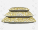 L’interno del cuscinoè in ovatta resinata e sfioccata in fibra di poliestere è ricoperta da una fodera in tessuto poliestere resistente fissata con impunture.