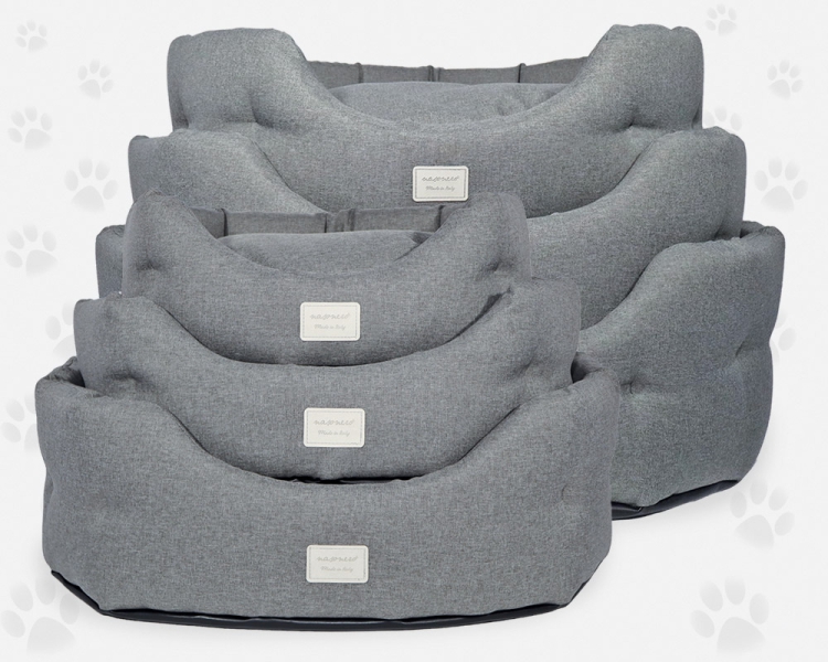 La struttura è composta da un'imbottitura uniforme in fibra di Poliestere, tagliata singolarmente a mano e fissata al tessuto con impunture.