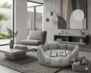La struttura è composta da un'imbottitura uniforme in fibra di Poliestere, tagliata singolarmente a mano e fissata al tessuto con impunture.