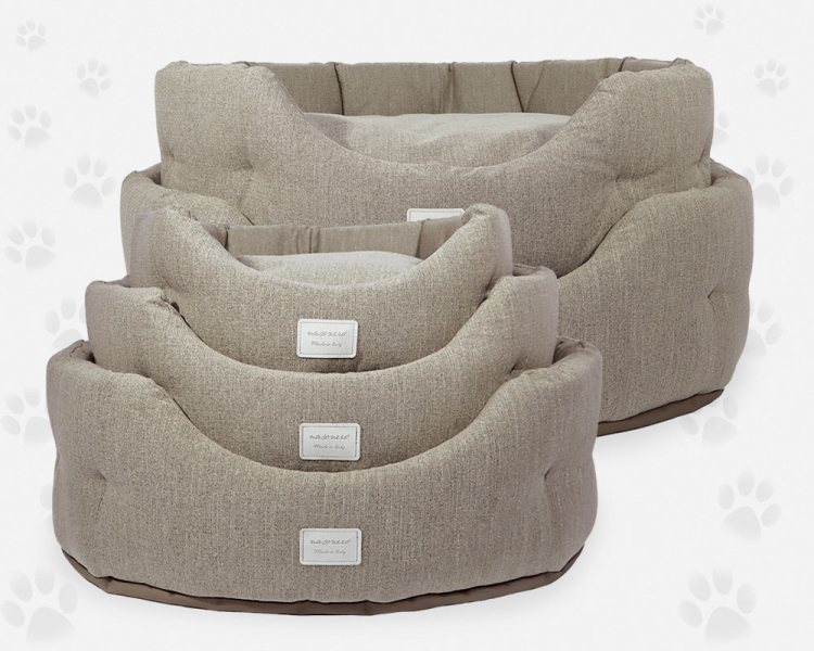 La struttura è composta da un'imbottitura uniforme in fibra di Poliestere, tagliata singolarmente a mano e fissata al tessuto con impunture.