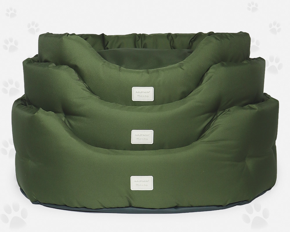 La struttura è composta da un'imbottitura uniforme in fibra di Poliestere, tagliata singolarmente a mano e fissata al tessuto con impunture.