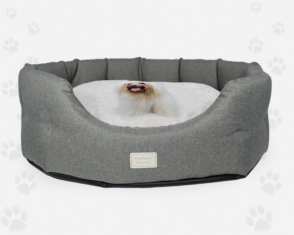La struttura è composta da un'imbottitura uniforme in fibra di Poliestere, tagliata singolarmente a mano e fissata al tessuto con impunture.